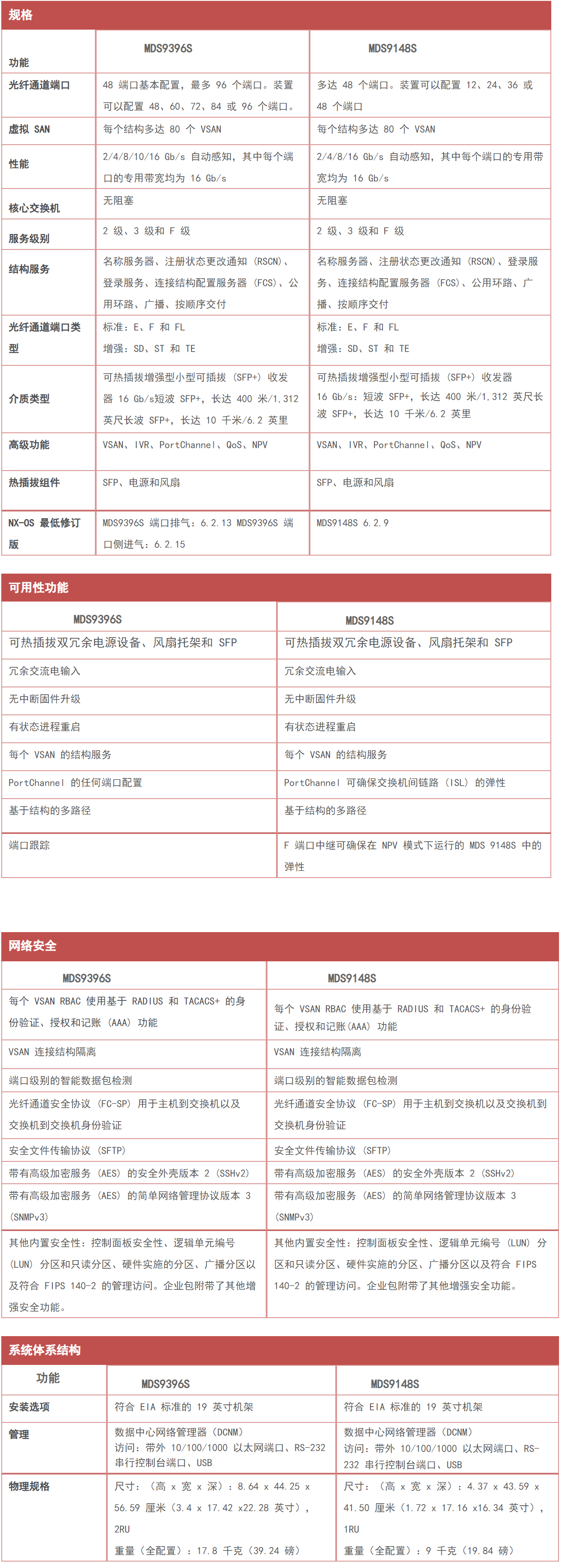 MDS9148S 此交换机在一个紧凑的单机架单元 (RU) 外形规格中可从 12 个线速 16 Gb/s 的光纤通道端口扩展到 48 个, 以经济实惠的成本给予高性能和卓越的灵活性。MDS9148S 是小型部门存储环境中独立存储区域网络 (SAN) 的理想解决方案,并且适合在中等规模冗余结构中用作架顶式交换机或者在大规模企业数据中心核心-边缘拓扑中用作边缘交换机。MDS9148S 给予 2 Gb/s、4 Gb/s、8 Gb/s 和 16 Gb/s 的速度,并且为每个端口给予 16 Gb/s 的专用带宽。每个端口可以配置短波或长波光纤。