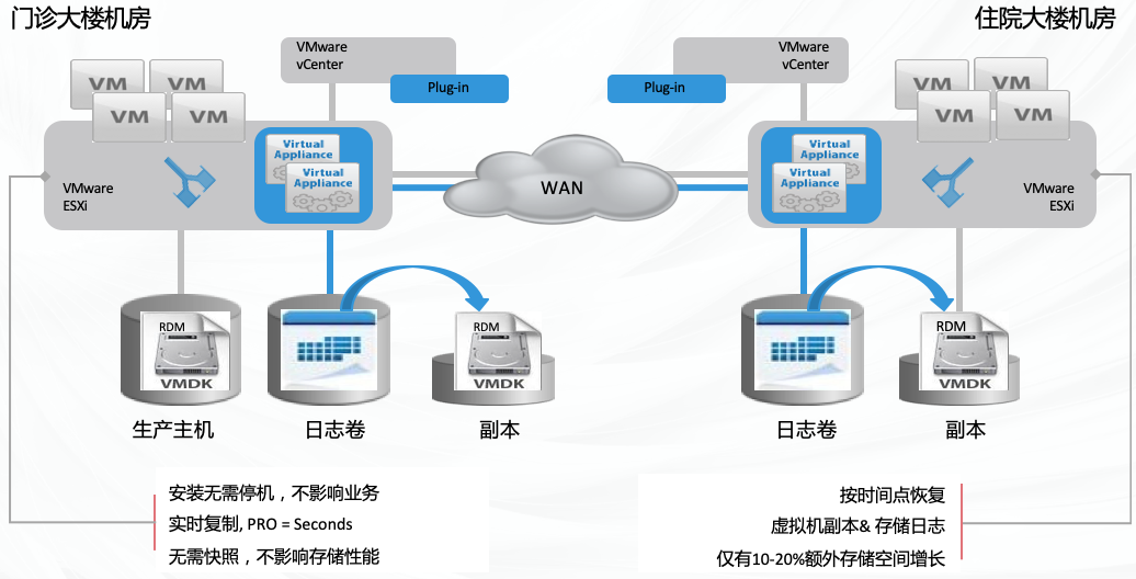 • Ezpay(中国)陆续在数据保护方案为医院虚拟化环境的关键业务实现两地三中心的容灾保护